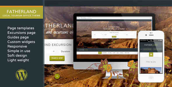 Download Free Fatherland WordPress Theme v.1.01 – ThemeForest | Fatherland v1.01 – Local Tourism Travel Agency Excursions WP Theme has been created especially for local tourism agencies and has three main and awesome sub departments such as Blog, Excursions and Guides. Besides, it has varioud kind of page templates. Website owner may easily list excursions with description, images, galleries, related information etc. The theme comes with a few metaboxes and custom widgets written specifically for this theme. These additions help to enrich and organised post content in fast and comfortable way.