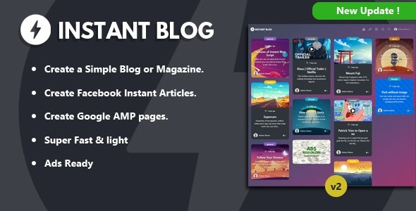 Instant Blog – Facebook Instant Articles Blog, Google AMP Free Download v3.3 | Instant Blog – Facebook Instant Articles Blog, Google AMP Nulled v3.3 | Instant Blog Nulled is a multi-purpose blog & magazine script. You can create easily Google AMP pages. Instant Blog Nulled has clean, responsive and user-friendly design.